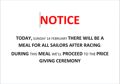 This Sunday the race is expected to start at 11:00 and there are 3 races scheduled. The qualifying races have finished and will now divide the fleet in Gold and Silver categories. This afternoon RCNGC will hold an event to give the Trophies to the best sailors.